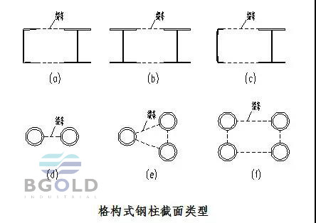柱按柱的截面形式分為:實腹式柱和格構式柱。